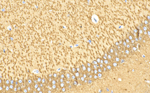 Immunohistochemical analysis of paraffin-embedded mouse brain tissue slide using Alpha Tubulin Rabbit Monoclonal Antibody(ARA690) at dilution of 1:1000 (under 40x lens). Heat mediated antigen retrieval with Tris-EDTA buffer (pH 9.0).