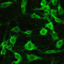 Immunofluorescence: PC-12 cells stained with ARG40794 anti-alpha 1 Antitrypsin antibody at 1:100 dilution.