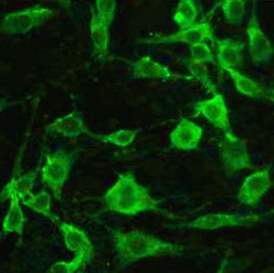 Immunofluorescence: PC-12 cells stained with ARG40794 anti-alpha 1 Antitrypsin antibody at 1:100 dilution.