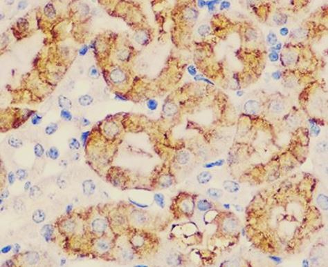 Immunohistochemistry: Paraffin-embedded Mouse kidney tissue stained with ARG40794 anti-alpha 1 Antitrypsin antibody at 1:100 dilution.
