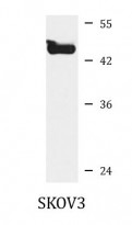 Western blot: 25 µg of SKOV3 cell lysate stained with ARG40794 anti-alpha 1 Antitrypsin antibody at 1:1000 dilution.