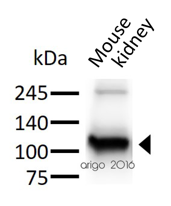 Western blot: 30 µg of Mouse kidney lysate stained with ARG52667 anti-CD10 antibody [SP179] at 1:400 dilution.