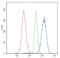 Flow Cytometry: U2OS cells were blocked with 10% normal goat serum and then stained with ARG58571 anti-EphA2 antibody (blue) at 1 µg/10^6 cells for 30 min at 20°C, followed by incubation with DyLight®488 labelled secondary antibody. Isotype control antibody (green) was rabbit IgG (1 µg/10^6 cells) used under the same conditions. Unlabelled sample (red) was also used as a control.