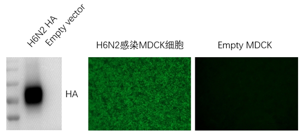 WB and IFA results indicate that this antibody can effectively recognize the H6N2 HA protein expressed in 293T cells.