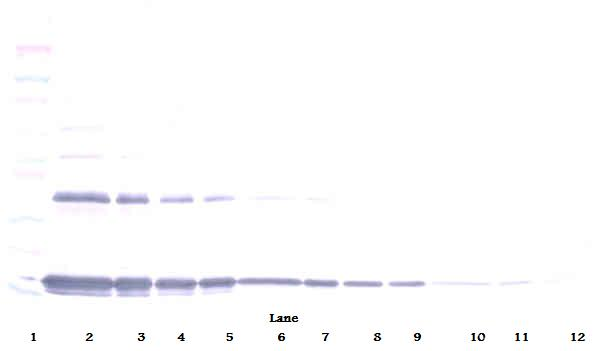 Western blot: 250 - 0.24 ng of Rat IL-1α stained with ARG56668 anti-IL1 alpha antibody, under reducing conditions.