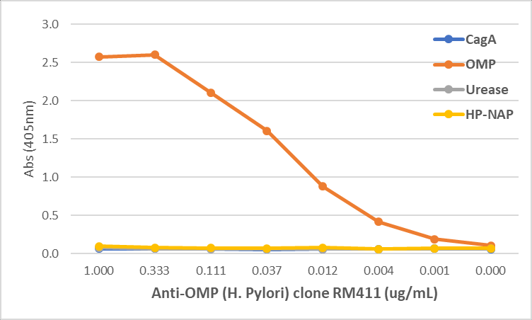 | Specificity | RM411 reacts to Helicobacter pylori outer membrane protein. |