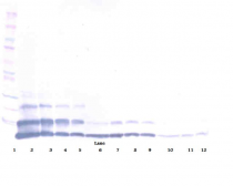 Western blot: 250 - 0.24 ng of Mouse RELMβ stained with ARG56619 anti-RELM beta antibody, under reducing conditions.