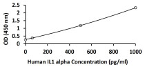 ARG83509 arigoPLEX® Human Inflammatory Cytokine Multiplex ELISA Kit results of a typical standard for Human IL1 alpha run with optical density reading at 450 nm.