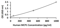 ARG83509 arigoPLEX® Human Inflammatory Cytokine Multiplex ELISA Kit results of a typical standard for Human MCP1 run with optical density reading at 450 nm.