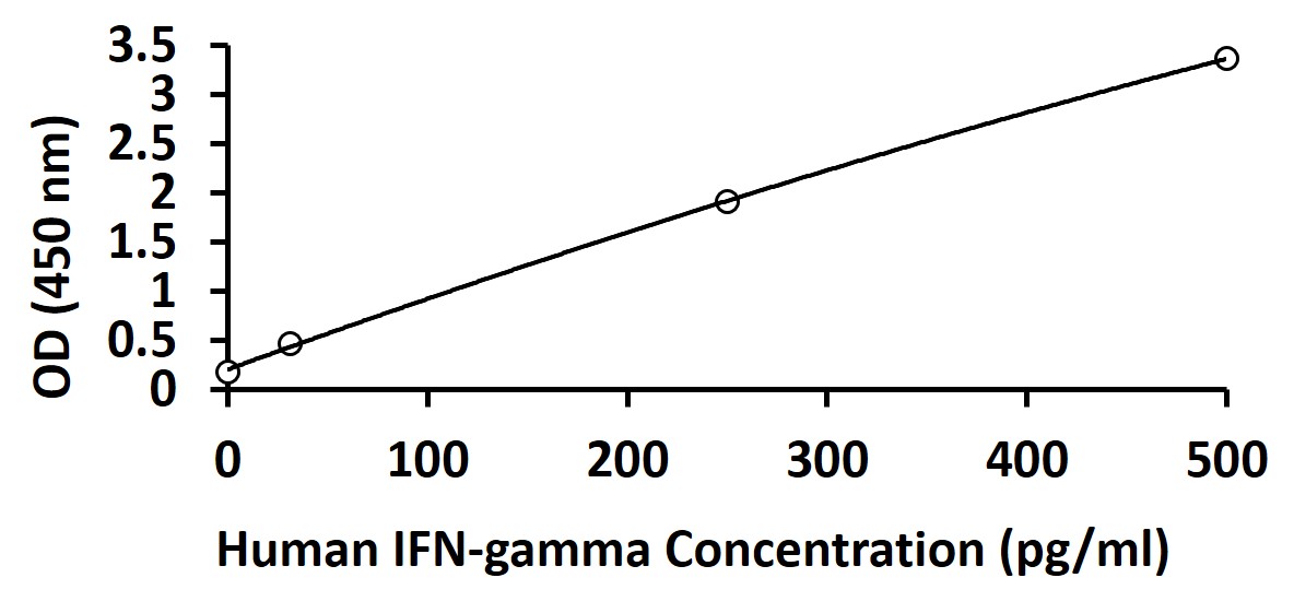 ARG83509 arigoPLEX® Human Inflammatory Cytokine Multiplex ELISA Kit results of a typical standard for Human IFN-gamma run with optical density reading at 450 nm.