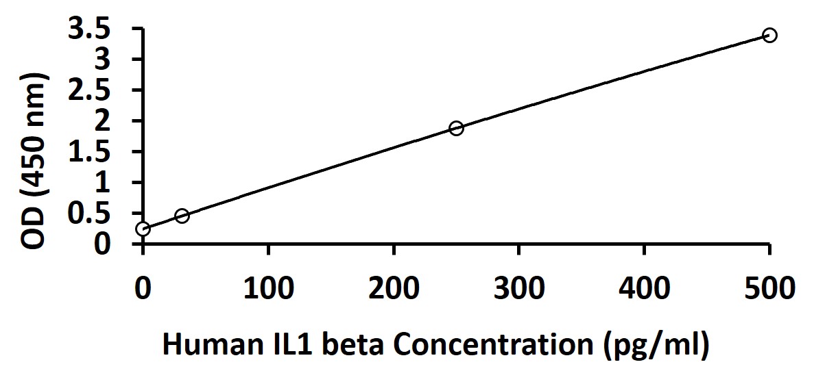 ARG83509 arigoPLEX® Human Inflammatory Cytokine Multiplex ELISA Kit results of a typical standard for Human IL1 beta run with optical density reading at 450 nm.