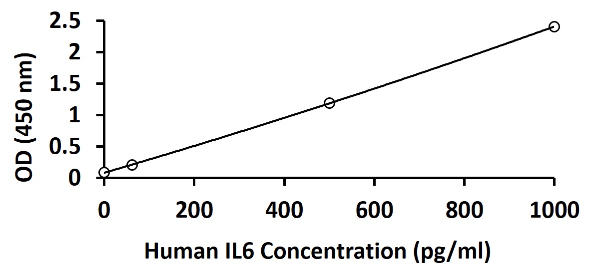 ARG83509 arigoPLEX® Human Inflammatory Cytokine Multiplex ELISA Kit results of a typical standard for Human IL6 run with optical density reading at 450 nm.