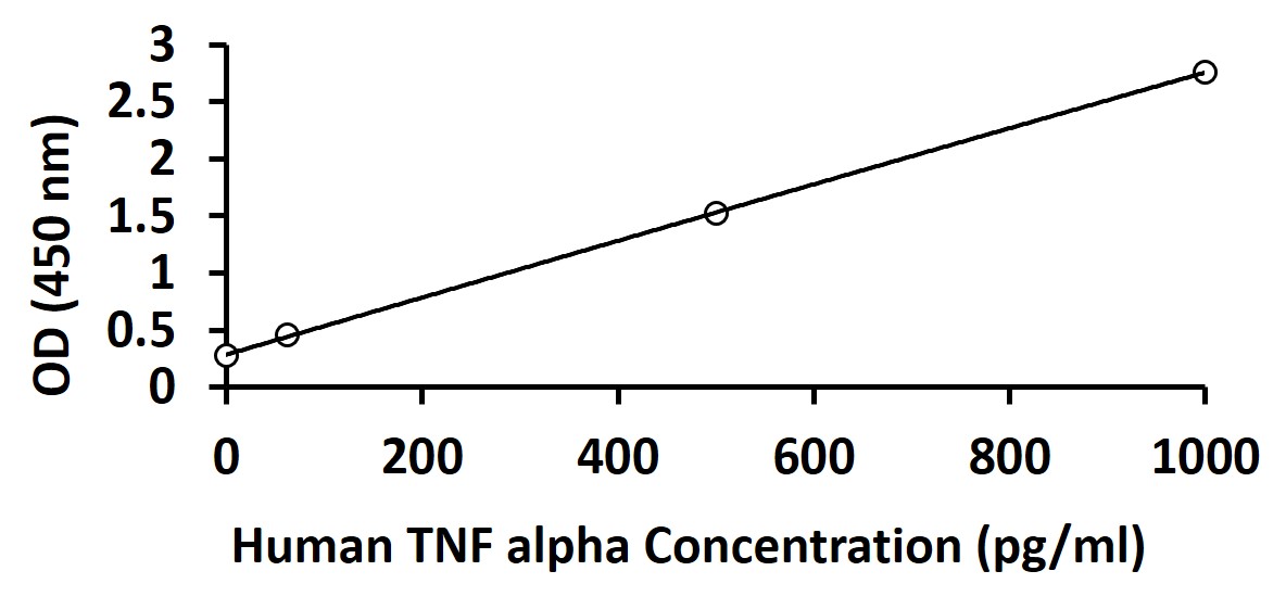 ARG83509 arigoPLEX® Human Inflammatory Cytokine Multiplex ELISA Kit results of a typical standard for Human TNF alpha run with optical density reading at 450 nm.