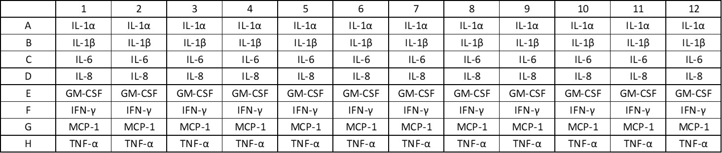 Antibodies Coating Pattern In Microtiter Plate of ARG83509 arigoPLEX® Human Inflammatory Cytokine Multiplex ELISA Kit (IL1 alpha, IL1 beta, IL6, IL8, GM-CSF, IFN-gamma, MCP1.TNF-alpha)