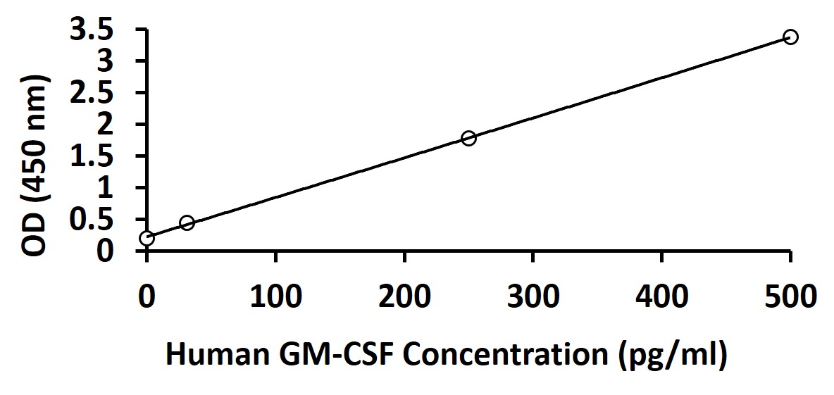 ARG83509 arigoPLEX® Human Inflammatory Cytokine Multiplex ELISA Kit results of a typical standard for Human GM-CSF run with optical density reading at 450 nm.