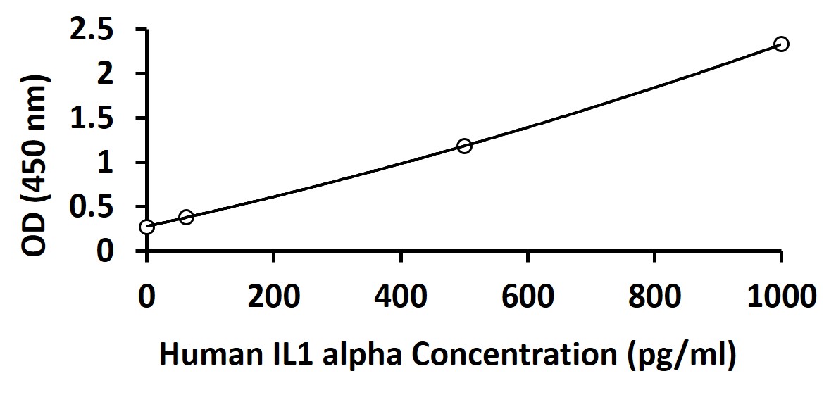 ARG83509 arigoPLEX® Human Inflammatory Cytokine Multiplex ELISA Kit results of a typical standard for Human IL1 alpha run with optical density reading at 450 nm.