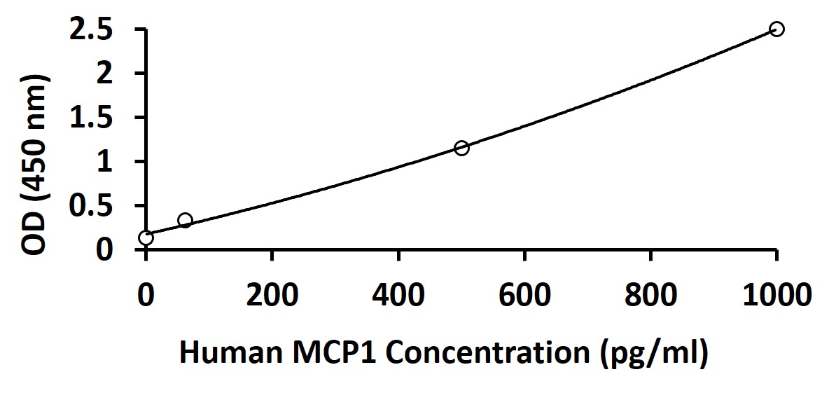 ARG83509 arigoPLEX® Human Inflammatory Cytokine Multiplex ELISA Kit results of a typical standard for Human MCP1 run with optical density reading at 450 nm.