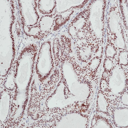 Immunohistochemical staining of human endometrial cancer tissue using BCOR Monoclonal Antibody(ARB595)