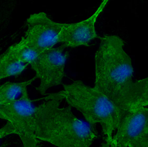 Immunofluorescent analysis of (4% PFA) fixed MDCK cells using Beta Actin Mouse Monoclonal antibody(ARA711) at dilution of 1:800 and Fluor 488 Mouse IgG Goat Antibody (H+L) .