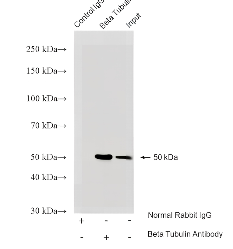 IP result of Beta Tubulin Rabbit monoclonal antibody(ARA675) (IP:4ug; Detection:1:10000) with HEK-293 cells lysate 1610 ug.