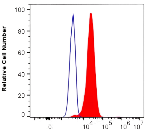 1x10^6 HEK-293 cells were intracellularly stained with 0.2 ug Beta Tubulin Rabbit monoclonal antibody(ARA675) and Fluor 488-Conjugated AffiniPure Rabbit IgG(H+L) Goat antibody (red), or 0.2 ug Isotype Control (blue). Cells were fixed with 4% PFA and permeabilized with Flow Cytometry Perm Buffer.
