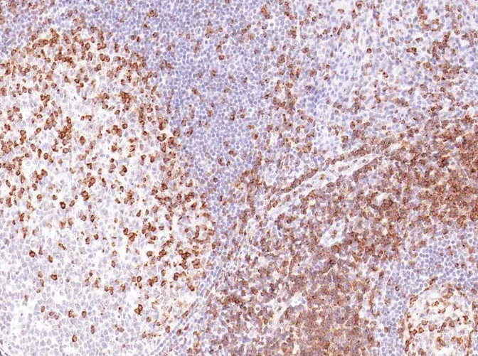 Immunohistochemical staining of human tonsil tissue using Cadherin-17 Rabbit Monoclonal Antibody(ARM933).