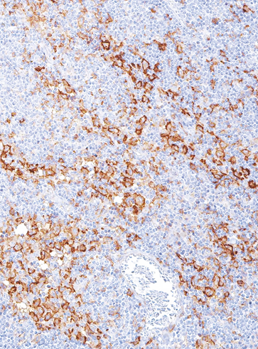 Immunohistochemical staining of human tonsil tissue using CD163 Mouse Monoclonal Antibody (ARM939).