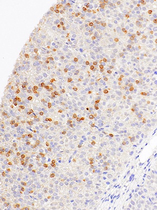 Immunohistochemical staining of human thymus tissue using CD1a Mouse Monoclonal Antibody (ARM940).