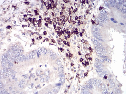 Immunohistochemical analysis of paraffin-embedded human rectum cancer tissue using CD6 Mouse Monoclonal Antibody(ARA993).