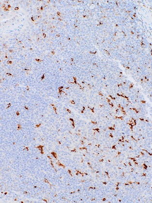 Immunohistochemical staining of human tonsil tissue using CD68 Mouse Monoclonal Antibody (ARM957).