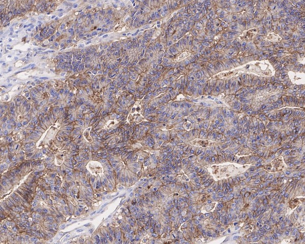 Immunohistochemical staining of human carcinoma tissue was performed using CD9 Rabbit Monoclonal Antibody(ARA959).