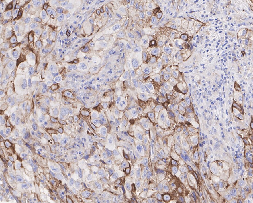Immunohistochemical staining of human lung carcinoma tissue was performed using CD9 Rabbit Monoclonal Antibody(ARA959).