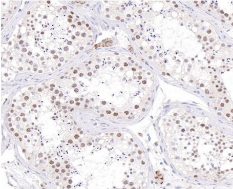 Immunohistochemistry (Formalin/PFA-fixed paraffin-embedded sections) analysis of human testis labelling EZH2 with ARB6743.