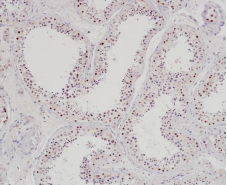 Immunohistochemistry (Formalin/PFA-fixed paraffin-embedded sections) analysis of human testis labelling EZHIP with EZHIP Rabbit Monoclonal Antibody(ARB952)