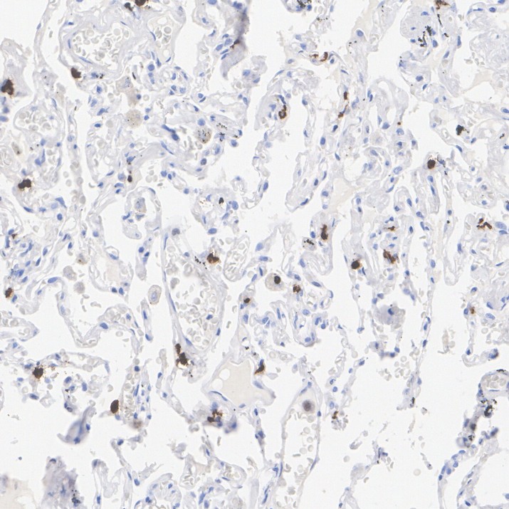 Immunohistochemical analysis of paraffin-embedded human lung tissue with FLI1 Rabbit Monoclonal Antibody(ARA995).