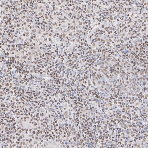 Immunohistochemical analysis of paraffin-embedded human B cell lymphoma tissue with FLI1 Rabbit Monoclonal Antibody(ARA995).