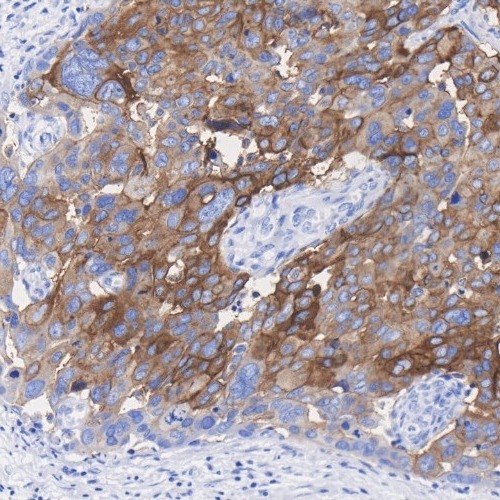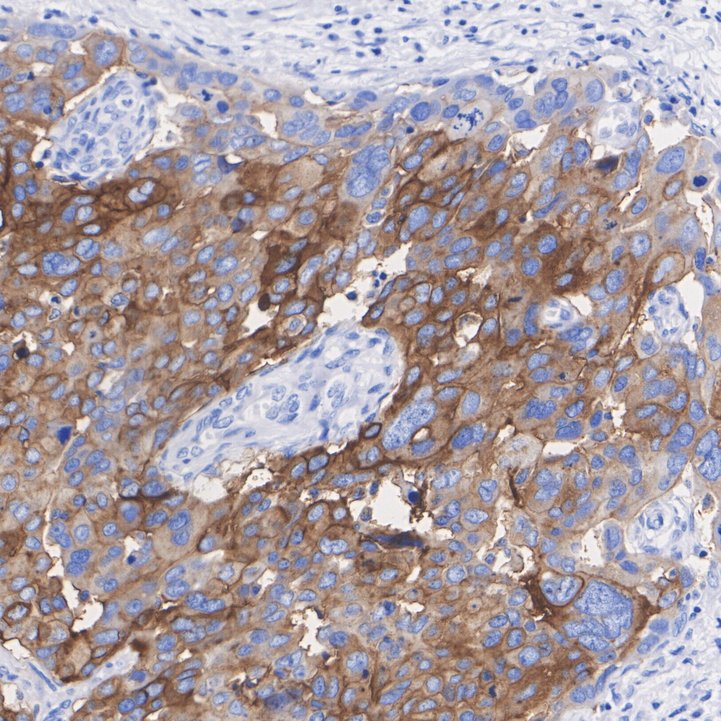 Immunohistochemical analysis of paraffin-embedded human ovary cancer tissue with FOLR1 Rabbit Monoclonal Antibody(ARA992).