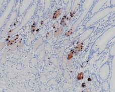 Immunohistochemistry (Formalin/PFA-fixed paraffin-embedded sections) analysis of humann gastric cancer labelling Gastrin with ARB6748.