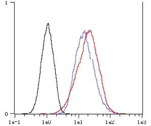 Overlay histogram showing 293 cells transfected with C-terminal (Red) and N terminal (Blue) GST tagged gene stained with GST tag Rabbit Monoclonal Antibody(ARA804).