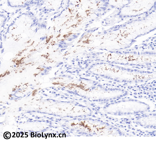 Immunohistochemical staining of human stomach tissue using Helicobactor pylori Rabbit Monoclonal Antibody(ARB587)