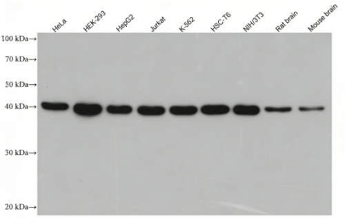Various lysates were subjected to SDS-PAGE followed by western blot with TDP43 Rabbit Monoclonal antibody at dilution of 1:20000. HRP-conjugated Rabbit IgG(H+L) Multiclonal Goat Monoclonal antibody was used at 1:20000 for detection.