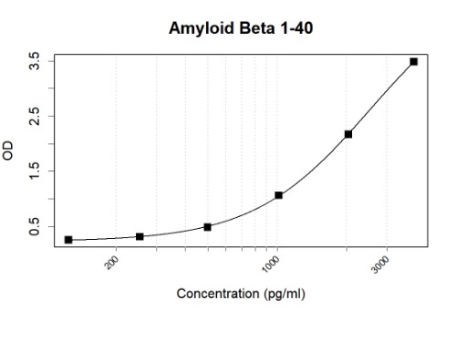 Sandwich ELISA Microtiter wells were coated with ARA6798 at 2 µg/mL as the capture antibody. Recommbinant Beta Amyloid 1-40 protein (Cat #: PE-001) was used as the antigen. 200 ng/mL biotin conjugated Beta Amyloid 1-40 Antibody (ARA6889) was used as the detection antibody. Result: ARA6798 and ARA6889 can be used as a matched antibody pair to detect and quantify the concentration of Human Beta Amyloid 1-40 with high specificity.