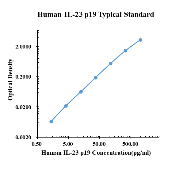 Interleukin 23 (IL-23) is a heterodimeric cytokine composed of two disulfide-linked subunits, a p19 subunit that is unique to IL-23, and a p40 subunit that is shared with IL-12. The p19 subunit has homology to the p35 subunit of IL-12, as well as to other single chain cytokines such as IL-6 and IL-11. The p40 subunit is homologous to the extracellular domains of the hematopoietic cytokine receptors. Mouse p19 cDNA encodes a 196 amino acid (aa) residue precursor protein with a putative 19 aa signal peptide and 177 aa mature protein. Human and mouse p19 share 70% aa sequence identity. Although p19 is expressed by activated macrophages, dendritic cells, T cells, and endothelial cells, only activated macrophages and dendritic cells express p40 concurrently to produce IL-23. The functional IL-23 receptor complex consists of two receptor subunits, the IL-12 receptor beta 1 subunit (IL-12 R beta 1) and the IL-23-specific receptor subunit (IL-23 R). IL-23 has biological activities that are similar to, but distinct from IL-12. Both IL-12 and IL-23 induce proliferation and IFN-gamma production by human T cells. While IL-12 acts on both na茂ve and memory human T cells, the effects of IL-23 is restricted to memory T cells. In mouse, IL-23 but not IL-12, has also been shown to induce memory T cells to secret IL-17, a potent proinflammatory cytokine. IL-12 and IL-23 can induce IL-12 production from mouse splenic DC of both the CD8- and CD8+ subtypes, however only IL-23 can act directly on CD8+ DC to mediate immunogenic presentation of poorly immunogenic tumor/self peptide