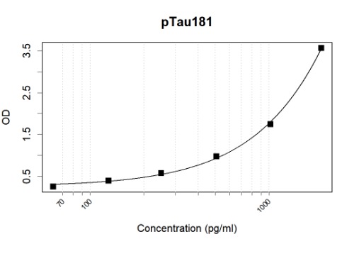 Microtiter wells were coated with ARA6838 at 1 µg/mL as the capture antibody. Recombinant pTau181 protein (Cat #: AXP6613) was used as the antigen. 100 ng/mL biotin conjugated Tau Antibody (ARA6841) was used as the detection antibody.