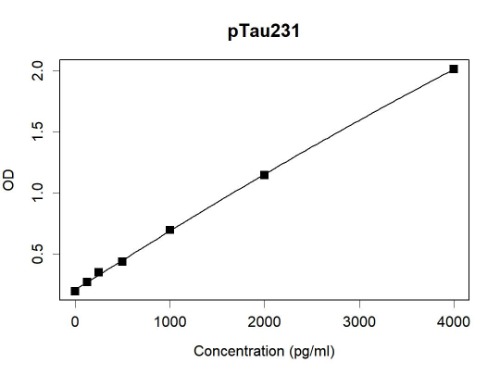 Sandwich ELISA Microtiter wells were coated with ARA6839 at µg/mL as the capture antibody. Recommbinant pTau231 protein (Cat #: PC-007) was used as the antigen. Biotin conjugated Tau Antibody ARA6837 was used as the detection antibody. Result: ARA6839 and ARA3837 can be used as a matched antibody pair to detect and quantify the concentration of Human pTau231 with high specificity.