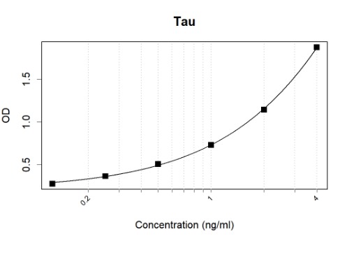 Microtiter wells were coated with ARA6837 at 2 µg/mL as the capture antibody. Recommbinant Tau protein (Cat #: PP-11309) was used as the antigen. 100 ng/mL biotin conjugated Tau Antibody (ARA6807) was used as the detection antibody.