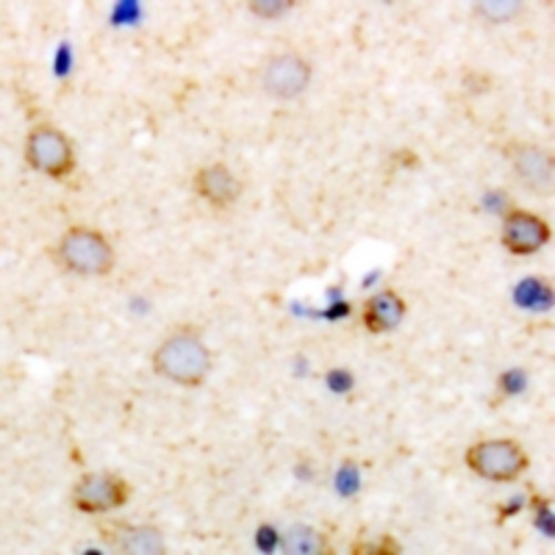 Immunohistochemical staining of human brain tissue sections was performed using IL-22 Rabbit Polyclonal Antibody(ARA6817).
