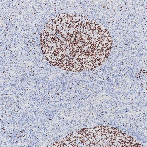 Heat induced epitope retrieval with Tris-EDTA buffer (pH 9.0), primary antibody incubate at RT (18℃-25℃) for 30 minutes. |