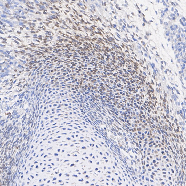 Immunohistochemical staining of mouse embryo tissue sections using MEOX2 Rabbit Polyclonal Antibody.