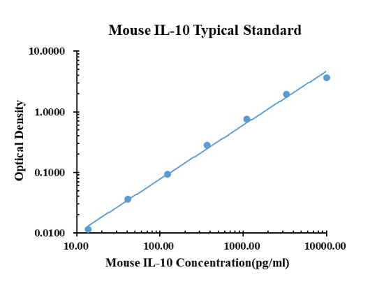 Interleukin-10 (IL-10), also known as cytokine synthesis inhibitory factor (CSIF), is the charter member of the IL-10 alpha -helical cytokine family that also includes IL-19, IL-20, IL-22, IL-24, and IL-26/AK155. IL-10 is secreted by many activated hematopoietic cell types as well as hepatic stellate cells, keratinocytes, and placental cytotrophoblasts. Whereas human IL-10 is active on mouse cells, mouse IL-10 does not act on human cells. Mature mouse IL-10 shares 85% amino acid sequence identity with rat IL-10 and 70-77% with bovine, canine, equine, feline, human, ovine, and porcine IL-10. It contains two intrachain disulfide bridges and is expressed as a 36 kDa noncovalently-associated homodimer.